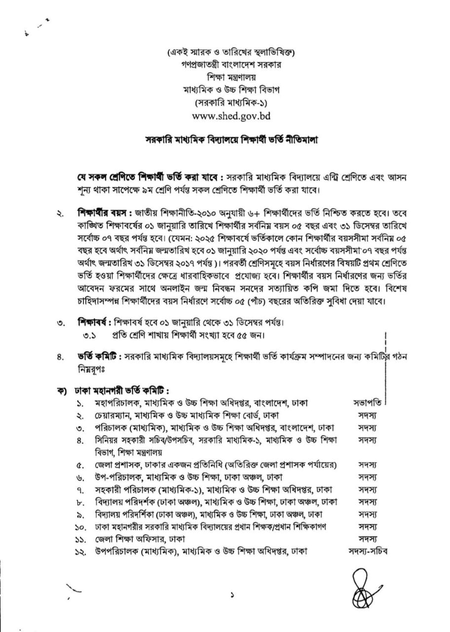 নির্বাচিত শিক্ষার্থীদের ভর্তি সংক্রান্ত